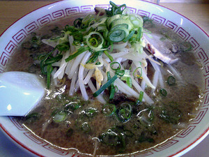黒いダシに黄色い細めんで、とんこつラーメンに慣れた方には