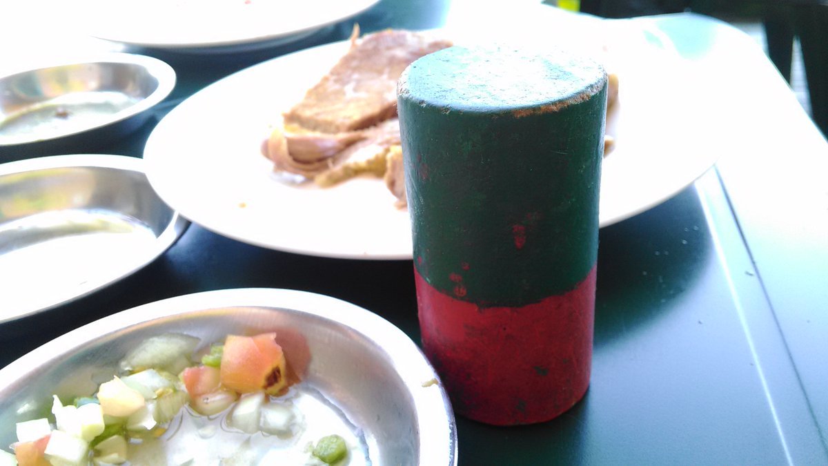 この円柱の緑を上にしていると、陽気なブラジル人(?)がノリノリで肉を持ってきます。延々と。