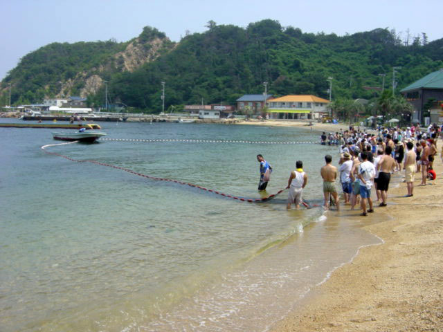 8月例会当日はここで地引網をするのです。