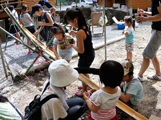 そうめん流しやBBQの食器を竹細工で手作り。