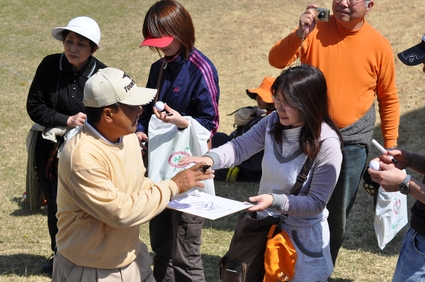 プレー終了後に邪魔にならないところでサインしてくれるプロもおられます。