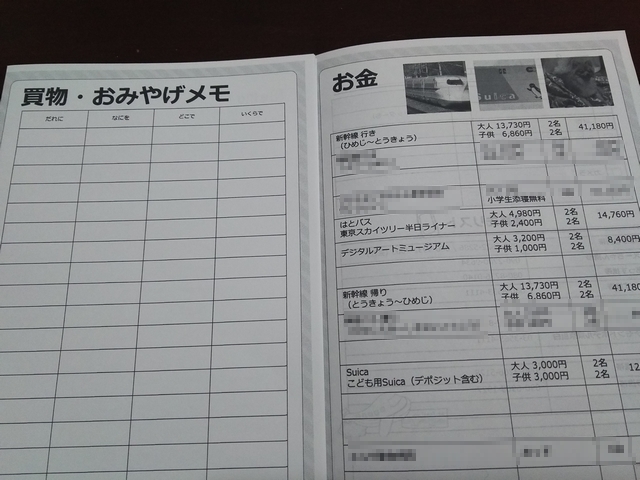 新幹線やホテル代、ツアー代金や施設入場料など、
