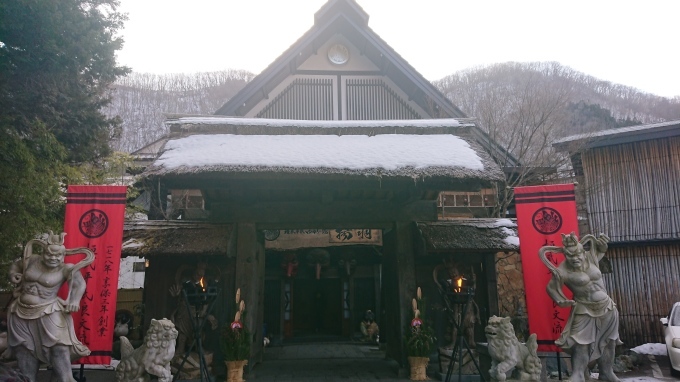 露天風呂から雪が舞い散るのを眺めながら、