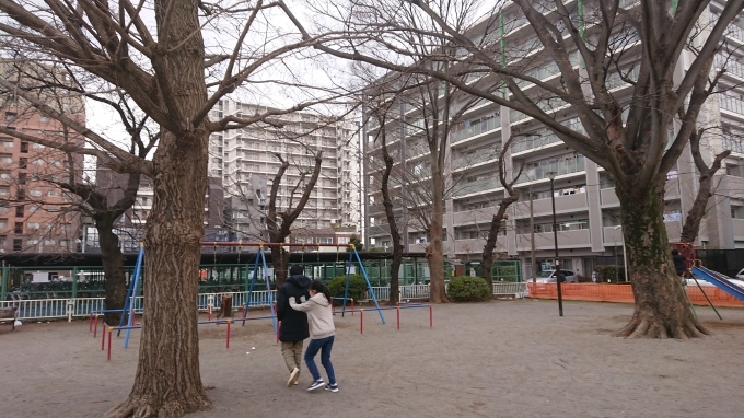 住んでいたマンションと目の前の公園。