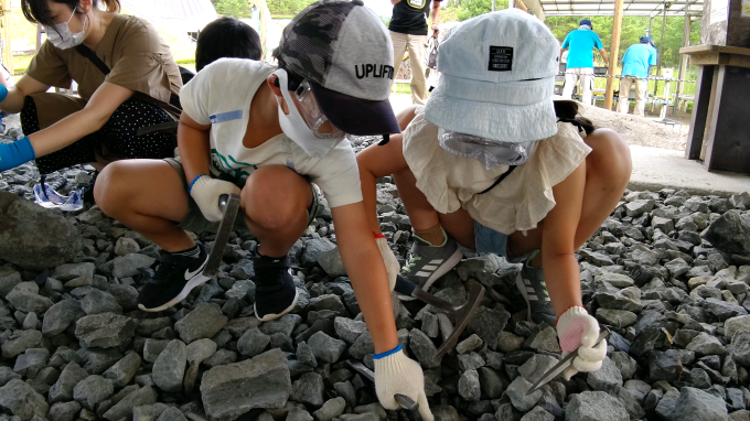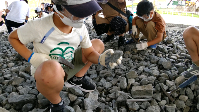 担当の方曰く、「化石を見つけるために石を割る作業が必要だが、割る前にまずその石の観察、捉え方が何より大切」で、形や色など、それぞれの個性をしっかり見極めて、その工程に入った方がよいとのことでした。