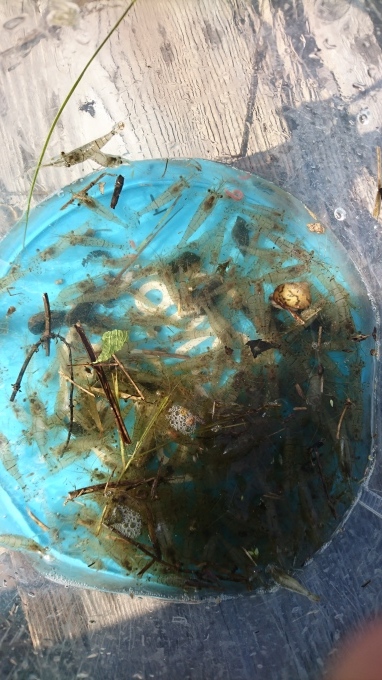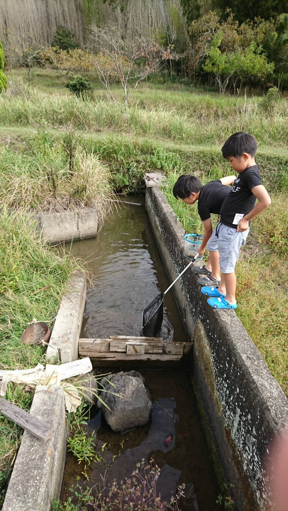 まずは、家の近所の溝に、しらさえびをとりにいきます!