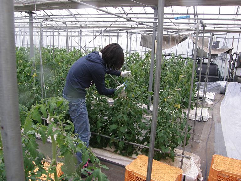 この日は、トマトの花に受粉させる作業を体験[#IMAGE|S5#]