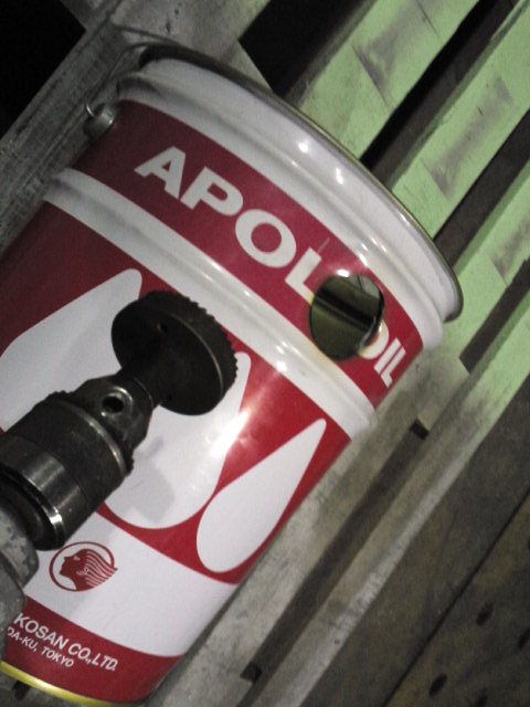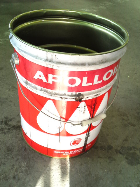 まずは本体となるオイル缶をGSで調達。もちろんオイルまみれですのでお掃除します。