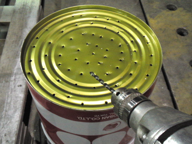 キレイになったら側面上部に適当に穴を。(ネットで参考書見てます)