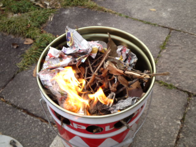 早速、身近にある木片を投入&着火。