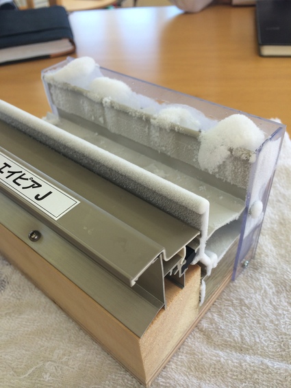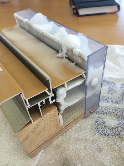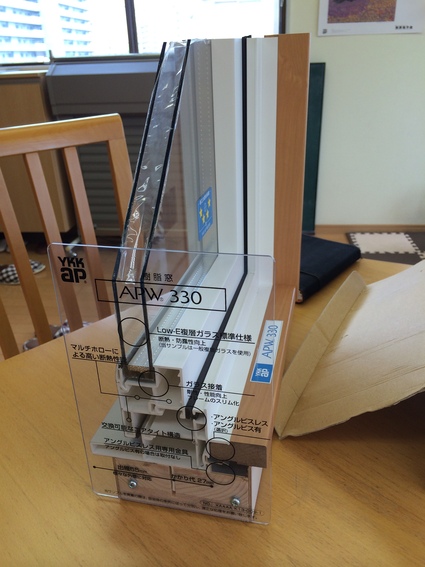 そしてこちらが外部はアルミ、室内に面した所は樹脂製のアルミ樹脂複合サッシ
