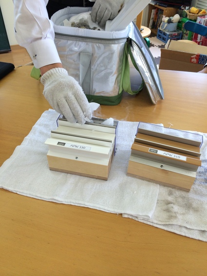 冬場の外気に面した部分から室内側へどのように熱が伝わってくるかを実験で見てみます。