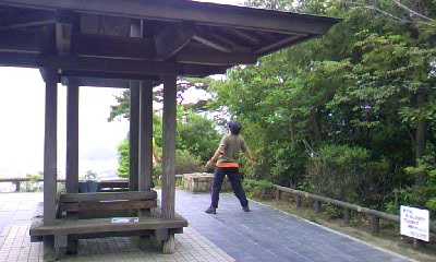 どこにでもラジオ体操の愛好家はいるものだなぁ~と感心していたら、その音は同伴者のTさんのポケットの中から。