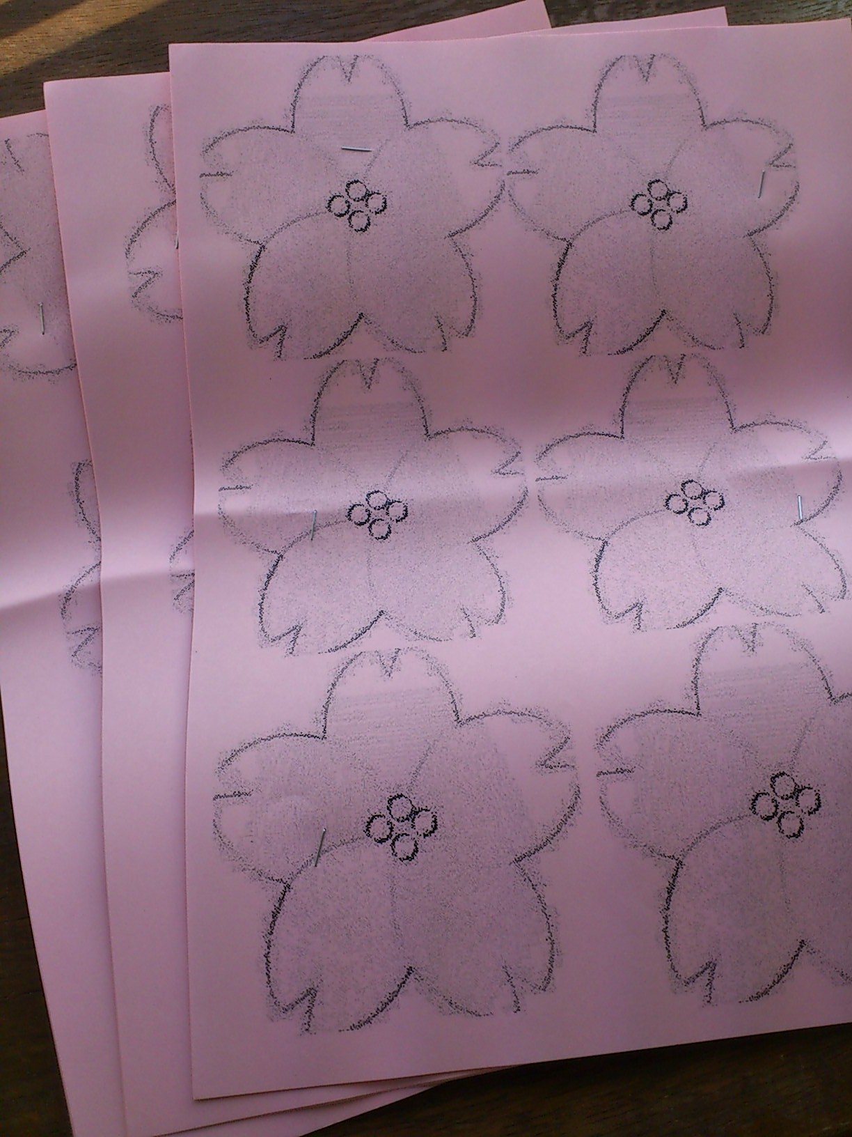 これを5枚ほど重ねて花びらをホッチキスでパチンと止める。
