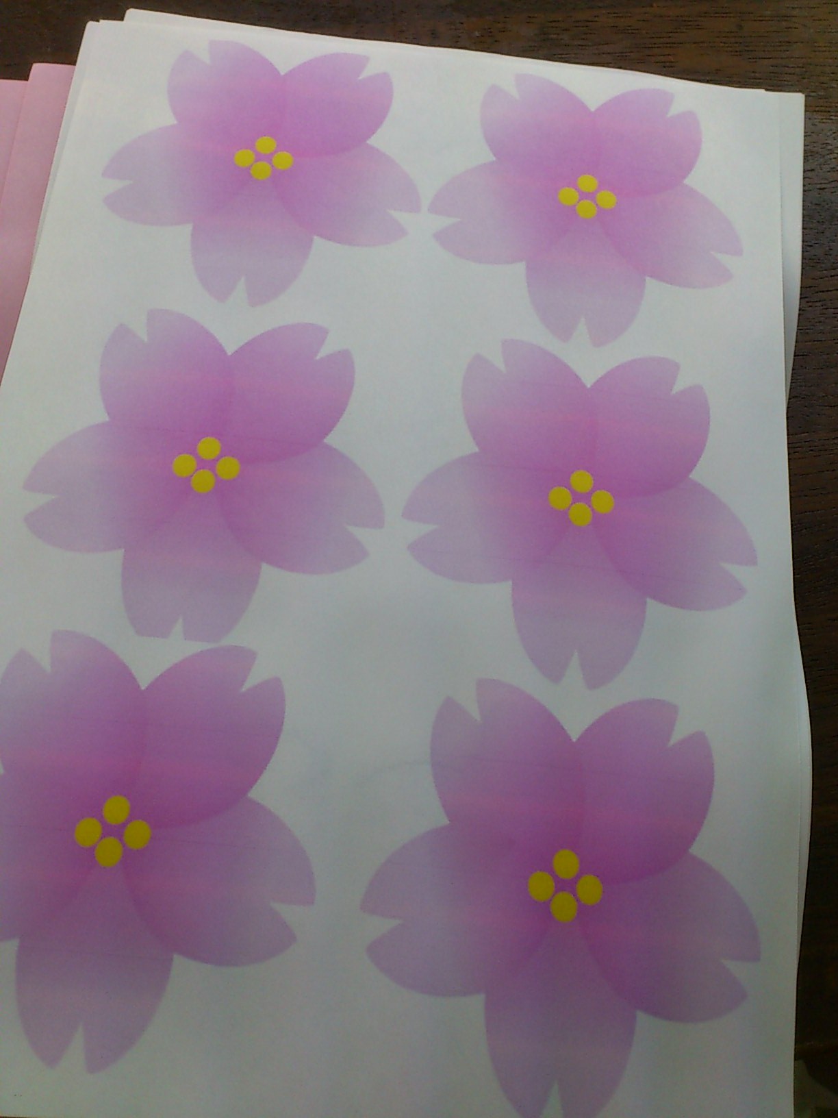 ピンクの紙にモノクロ印刷。
