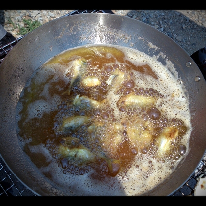 炭火で揚げ物したので体感温度は80℃を軽く超えていました。