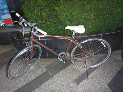 魚町付近で、コラぼる会10周年記念事業にて優勝チームに贈呈された由緒正しいチャリを発見。