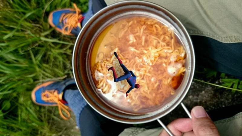 スパイダーラーメンなどを軽く食べます。暑いけど美味しいですね。