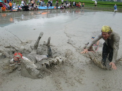 我々はどろんこ祭りの中でも最強チームと呼び声高くなりつつあります。