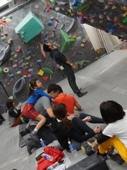 事前の作戦タイムは大切です。そう、ボルダリングは頭脳を使うスポーツです。