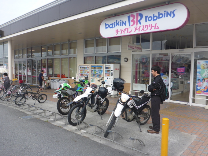 前々からオフロードに興味があるといってた地元ツレで和菓子屋のI君と、もう1人地元の中級ライダー(緑色)と3人で行ってきました。