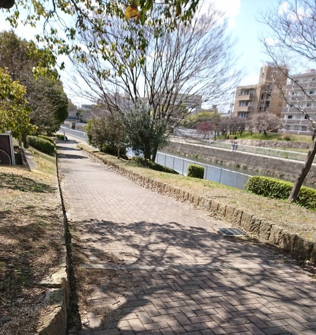 川沿いには遊歩道が伸びていますので、