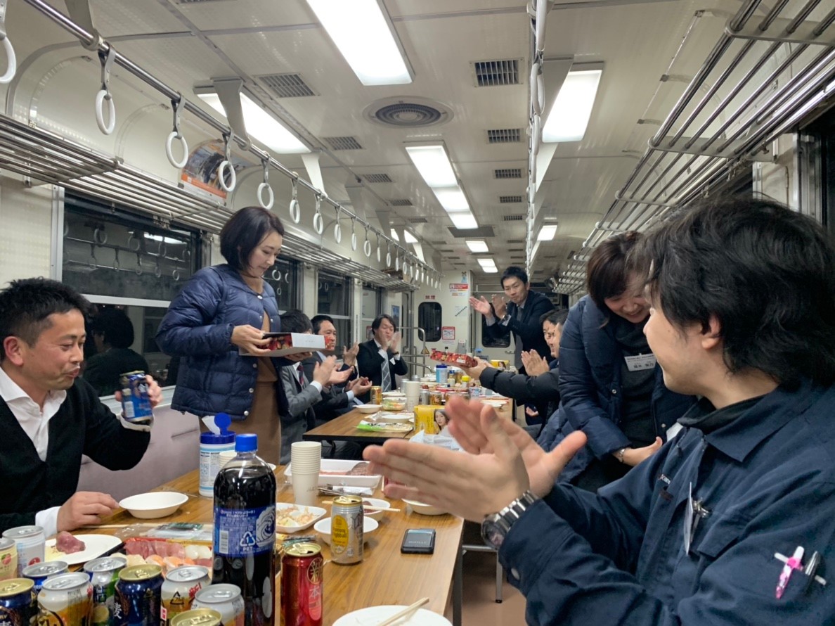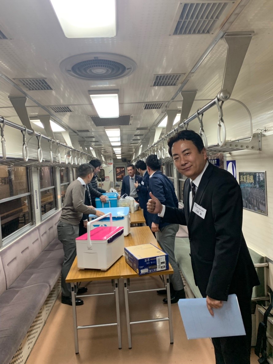 北条町駅~粟生駅間を往復し、北条町駅に到着後、更に宴会です。