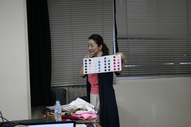 カラーコーディネーターの木下先生をお招きし、色が人に与える効果についてのお話です。「色彩学にもとづいた理論」というご講義内容で 色使いによって人から見た印象が大きく変わることがよくわかりました。講義もたいへん面白く、興味深い内容で ビジネスにも役立てる良い機会をいただきました。