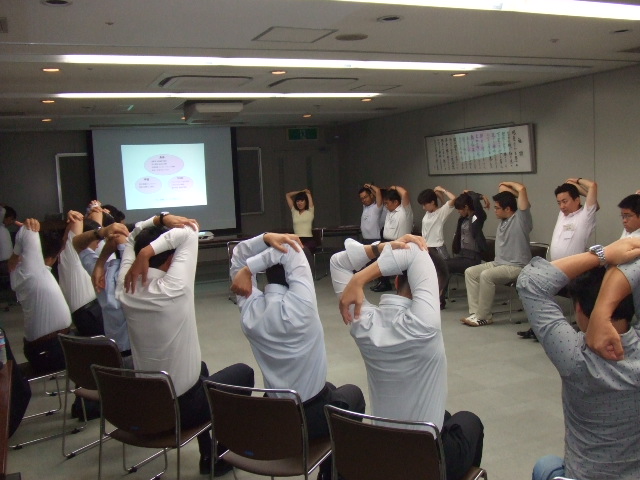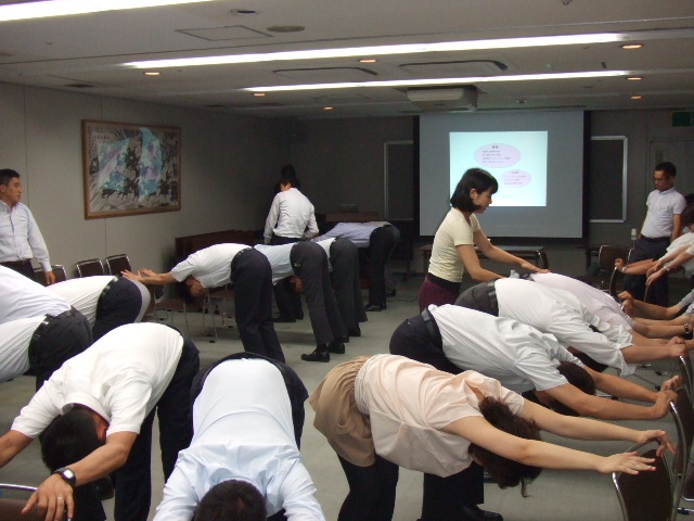 スーツを着たまま・椅子に座って、仕事の合間や一日の終わりに